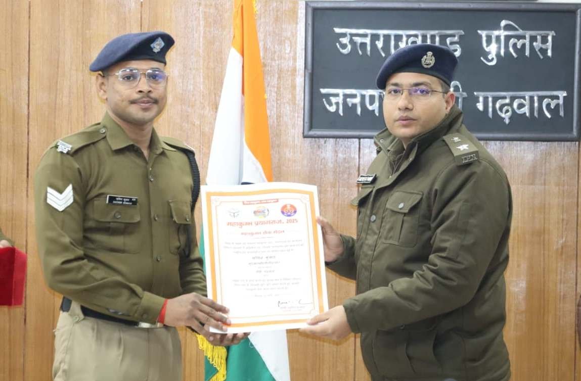 इसी गौरवपूर्ण उपलब्धि पर आज आयोजित मासिक अपराध गोष्ठी के दौरान वरिष्ठ पुलिस अधीक्षक पौड़ी सर्वेश पंवार द्वारा तीनों कार्मिकों को प्रशस्ति पत्र प्रदान करते हुए महाकुंभ सेवा मेडल से अलंकृत किया साथ ही उनका हौसला बढाते हुए भविष्य में भी इसी प्रकार निष्ठा से ड्यूटी करने के लिए प्रेरित किया गया। यह सम्मान न केवल उनकी उत्कृष्ट सेवा का प्रतीक है, बल्कि समस्त पुलिस बल के लिए भी प्रेरणा का स्रोत है