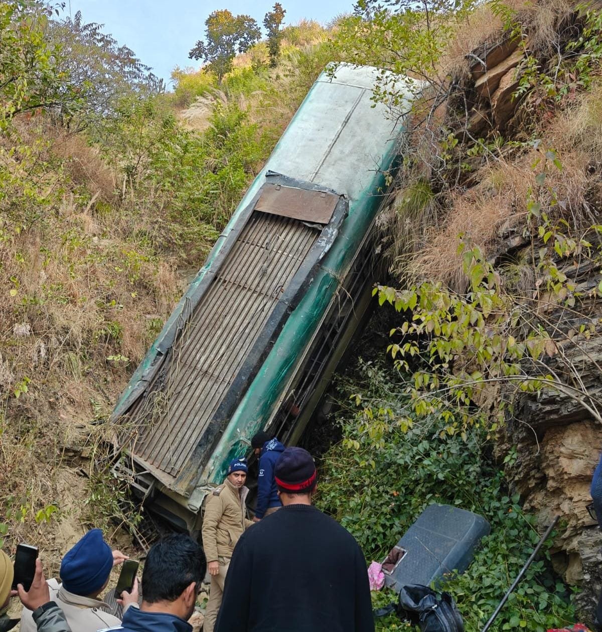 अल्मोड़ा जिले की भिकियासैंण तहसील क्षेत्र में विनायक के पास सैलापानी के समीप एक यात्री बस के दुर्घटनाग्रस्त हो जाने से बड़ा हादसा हो गया इस दर्दनाक दुर्घटना में अब तक चार यात्रियों की मौत की पुष्टि हुई है, जबकि कई अन्य यात्रियों के घायल होने की आशंका जताई जा रही है। प्राप्त जानकारी के अनुसार बस द्वाराहाट से रामनगर की ओर जा रही थी। सैलापानी के समीप अचानक बस अनियंत्रित होकर गहरी खाई में जा गिरी। हादसा इतना भीषण था कि मौके पर अफरा-तफरी मच गई। सूचना मिलते ही भतरौजखान पुलिस, प्रशासन, आपदा प्रबंधन की टीमें और स्थानीय ग्रामीण मौके पर पहुंच गए DCR अल्मोड़ा के माध्यम से SDRF को सूचना प्राप्त हुई कि भिकियासैंण से रामनगर जा रही एक यात्री बस विनायक क्षेत्र में दुर्घटनाग्रस्त होकर खाई में गिर गई है। बस में लगभग 17–18 यात्री सवार बताए गए हैं प्राप्त सूचना के अनुसार उक्त दुर्घटना में 06-07 व्यक्तियों की घटनास्थल पर ही मृत्यु होने की सूचना है, जबकि अन्य घायल यात्रियों को उपचार हेतु भिकियासैंण के सरकारी अस्पताल में भर्ती कराया गया है।अब तक चार शवों को खाई से बाहर निकाला जा चुका है, जबकि अन्य यात्रियों की तलाश और स्थिति की पुष्टि की जा रही है। मृतकों की पहचान और पते का विवरण जुटाने का कार्य प्रशासन द्वारा किया जा रहा है पुलिस के अनुसार खाई की गहराई अधिक होने के कारण रेस्क्यू अभियान में काफी कठिनाइयों का सामना करना पड़ रहा है, बावजूद इसके युद्धस्तर पर राहत एवं बचाव कार्य जारी हैस्थानीय ग्रामीणों ने भी रेस्क्यू अभियान में अहम सहयोग किया है