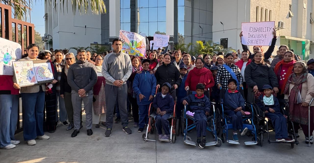 विश्व दिव्यांग सप्ताह के अवसर पर रफेल होम संस्था द्वारा दिव्यांगजनों के प्रति जागरूकता एवं संवेदनशीलता बढ़ाने हेतु एक जागरूकता ‘‘वॉक फॉर डिस्एबिलिटी’’ का आयोजन किया गया।‘‘वॉक फॉर डिस्एबिलिटी’’ का शुभारंभ जिलाधिकारी सविन बंसल एवं मुख्य विकास अधिकारी अभिनव शाह ने दून लाइब्रेरी चौक से गुब्बारे उड़ाकर किया इस आयोजन में लगभग 300 बौद्धिक दिव्यांगजन, बच्चे शामिल हुए जिलाधिकारी सविन बसंल एवं मुख्य विकास अधिकारी अभिनव शाह ने स्वयं बच्चों के साथ ‘‘वॉक फॉर डिस्एबिलिटी’’ में पैदल चलते हुए दिव्यांगजनों को प्रोत्साहित किया। जिलाधिकारी ने बच्चों से संवाद कर उनका उत्साहवर्धन किया तथा समाज में समावेशन और समान अवसर सुनिश्चित किए जाने के प्रति जिला प्रशासन की प्रतिबद्धता व्यक्त की ‘वॉक फॉर डिस्एबिलिटी’’ दून लाइब्रेरी चौक से प्रारम्भ होकर विकास भवन चौक, एस्लेहॉल से होते हुए पुनः लाइब्रेरी चौक लौटकर सम्पन्न हुई। मार्ग में प्रतिभागियों ने दिव्यांगजन अधिकार, समावेशी शिक्षा, सुलभता (Accessibility) तथा सामाजिक जागरूकता संबंधी संदेशों के साथ समाज को संवेदनशील बनाने का आह्वान किया जिलाधिकारी ने कहा कि बौद्धिक दिव्यांगजन समाज का अभिन्न हिस्सा हैं और उनके अधिकारों की रक्षा, कल्याणकारी योजनाओं का लाभ सुनिश्चित करना तथा उनके लिए सुलभ वातावरण तैयार करना जिला प्रशासन की सर्वाेच्च प्राथमिकता है। उन्होंने रफेल होम संस्था द्वारा किए जा रहे प्रयासों की सराहना की और भविष्य में भी ऐसे कार्यक्रम आयोजित करने के लिए प्रेरित किया। उन्होंने कहा कि दिव्यांगजनों को मुख्यधारा में जोड़ना उद्देश्य है, तथा इस क्षेत्र में जो संस्थाएं कार्य कर रही हैं उनका प्रयास सराहनीय है। मा0 मुख्यमंत्री की भी प्राथमिकता है कि ऐसी आबादी को मुख्यधारा से जोड़ना है। दिव्यांग जनों का उत्साहवर्धन करने हेतु ब्राइटलैंड स्कूल के लगभग 50 छात्राओं द्वारा स्लोगन के साथ प्रतिभाग किया। कार्यक्रम में विभिन्न विभागों के अधिकारी, शिक्षण संस्थानों के प्रतिनिधि एवं समाजसेवी संगठनों के सदस्य उपस्थित रहे। ‘‘वॉक फॉर डिस्एबिलिटी’’ के समापन पर प्रतिभागियों का आभार व्यक्त किया गया। कार्यक्रम में मुख्य विकास अधिकारी अभिनव शाह, मुख्य कार्यकारी अधिकारी रफेल होम प्रियालाल, प्रधानाध्यापक सुरभि, मेघा सहित ब्राइटलैंड स्कूल के शिक्षकों एवं छात्र/छात्राओं द्वारा प्रतिभाग किया
