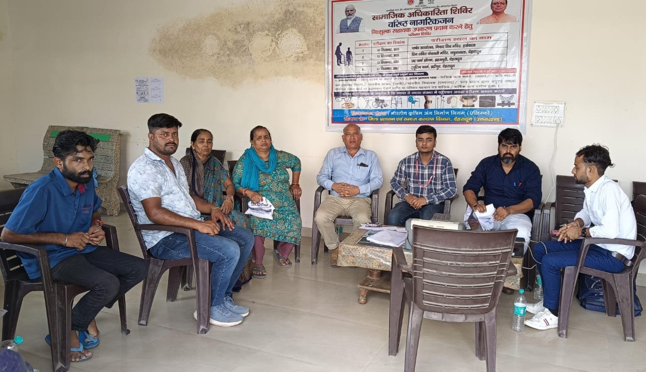 शिविर में सामाजिक न्याय एवं अधिकारिता मंत्रालय भारत सरकार की ओर से शोविक दास, विशाल मौर्य, कुणाल कटारिया, आशुतोष दीक्षित तथा डीडीआरसी की तरफ से राजेश कुमार, उमेश ग्रोवर एवं जिला समाज कल्याण विभाग देहरादून की ओर से गंभीर सिंह रावत, गगन कुमार थापा और हर्रावाला मा0 पार्षद देवी दयाल ओडवाल ने प्रतिभाग किया।