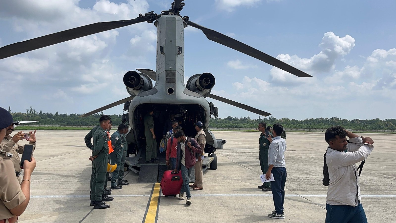 गंगोत्री, हर्षिल, धराली क्षेत्र से फंसे यात्रियों को चिनूक व MI-17 से पहुंचाया जा रहा जौलीग्रांट एयरपोर्ट